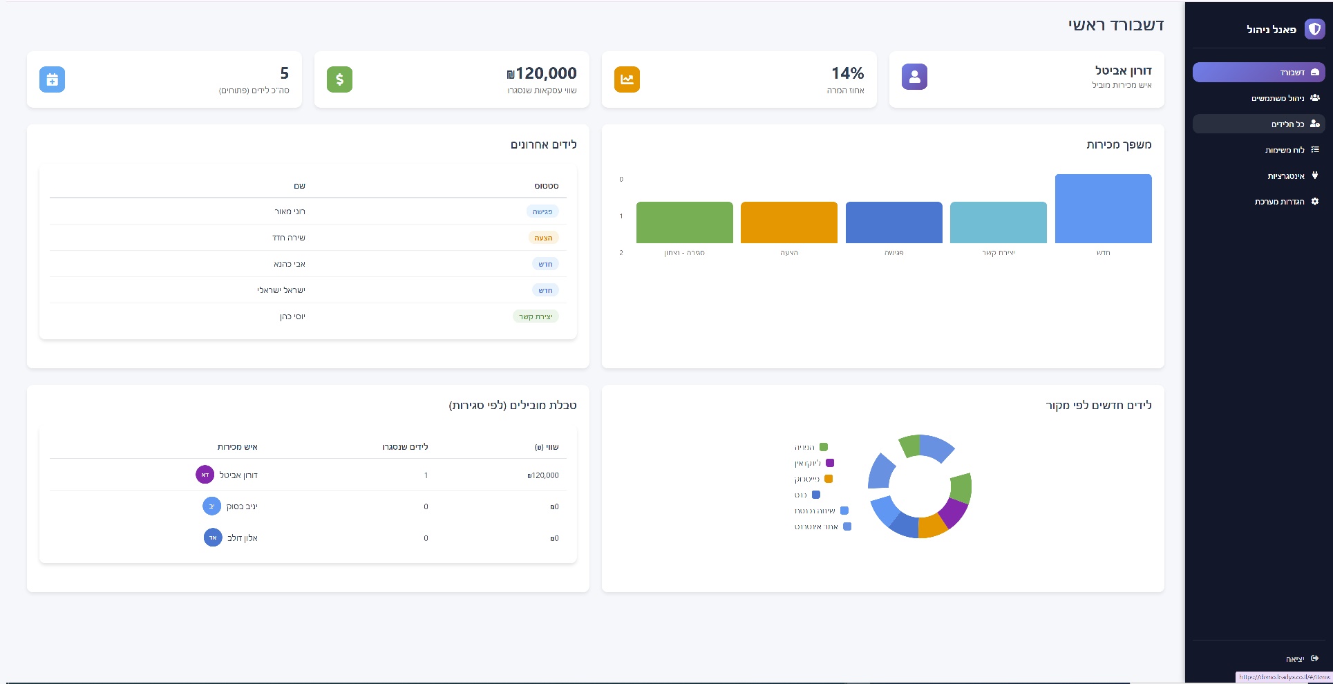 עקבו אחר הביצועים בדשבורד חכם, זהו את מקורות הלידים היעילים ביותר ושפרו את ה-ROI.